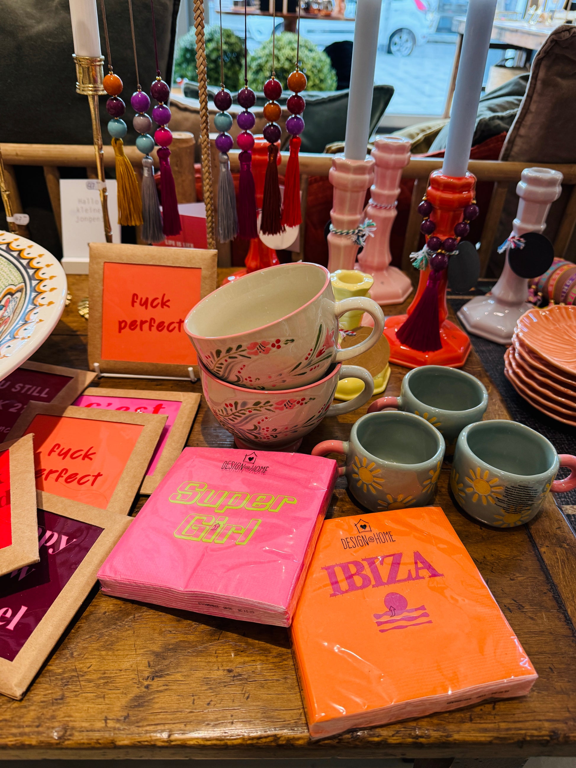 The Nini Cup by Bloomingville is a stoneware mug featuring sun motifs on a deep blue base, completed with a rounded handle in warm rose. The handpainted finish adds character to each piece. Small variations in pattern and color intensity may occur, making each piece unique.