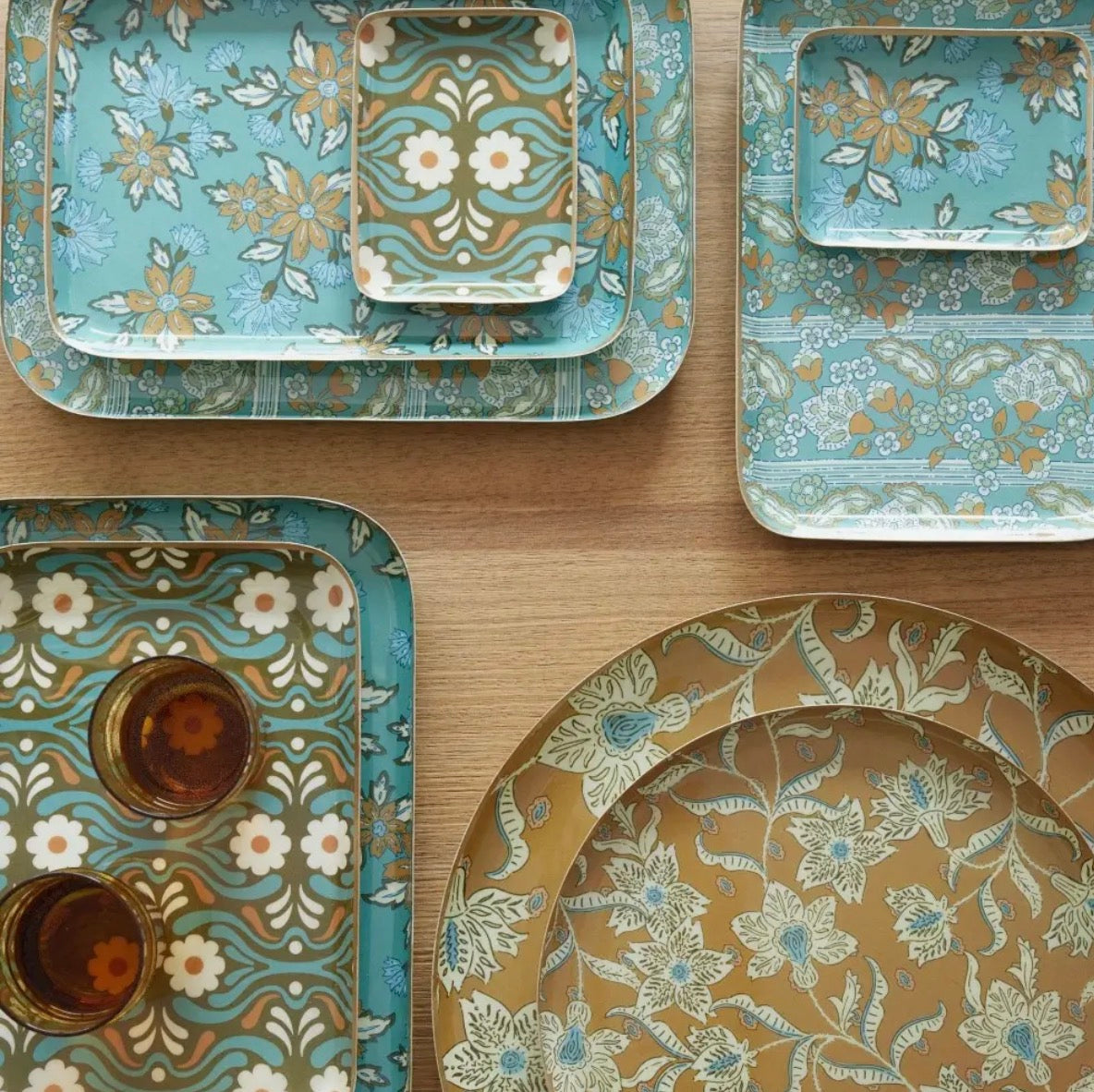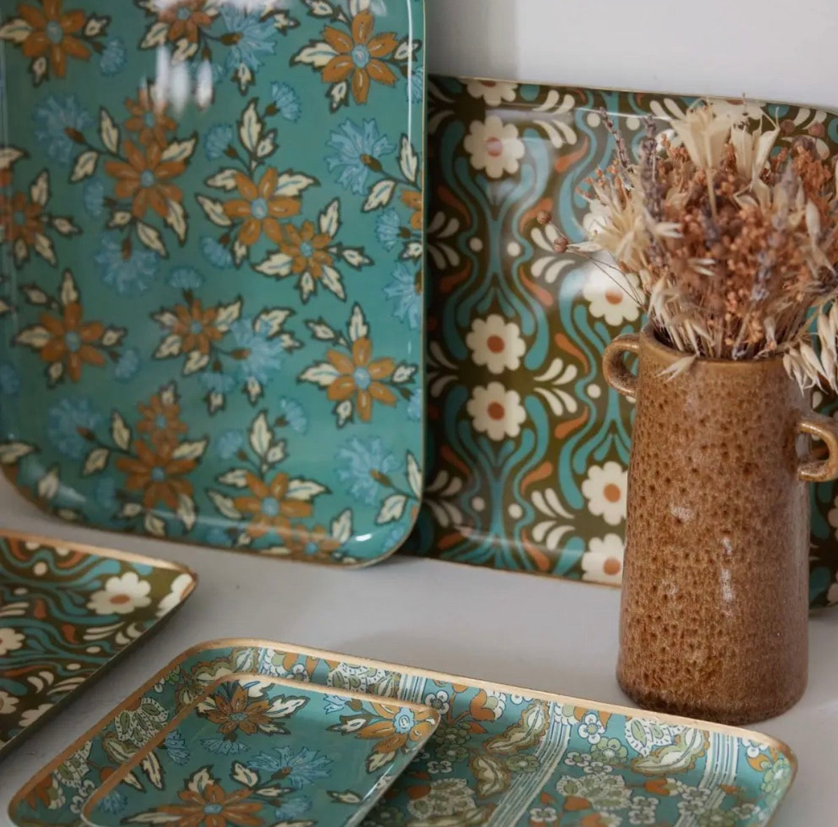 Zo leuk zijn ze deze plateaus van Bonheur du Jour, gemaakt van geëmailleerd metaal, met de exclusieve motieven zijn ze geschikt voor elk interieur, of je nu van modern, vintage of landelijk houdt. Het gouden randje wordt er met de hand op geschilderd zodat elk stuk uniek is. Ze zijn ideaal voor een kleine snack, koffie kopje of zoetigheden bij de thee. Deze bloemenpatroon voegt een vrolijke noot toe aan je interieur.
