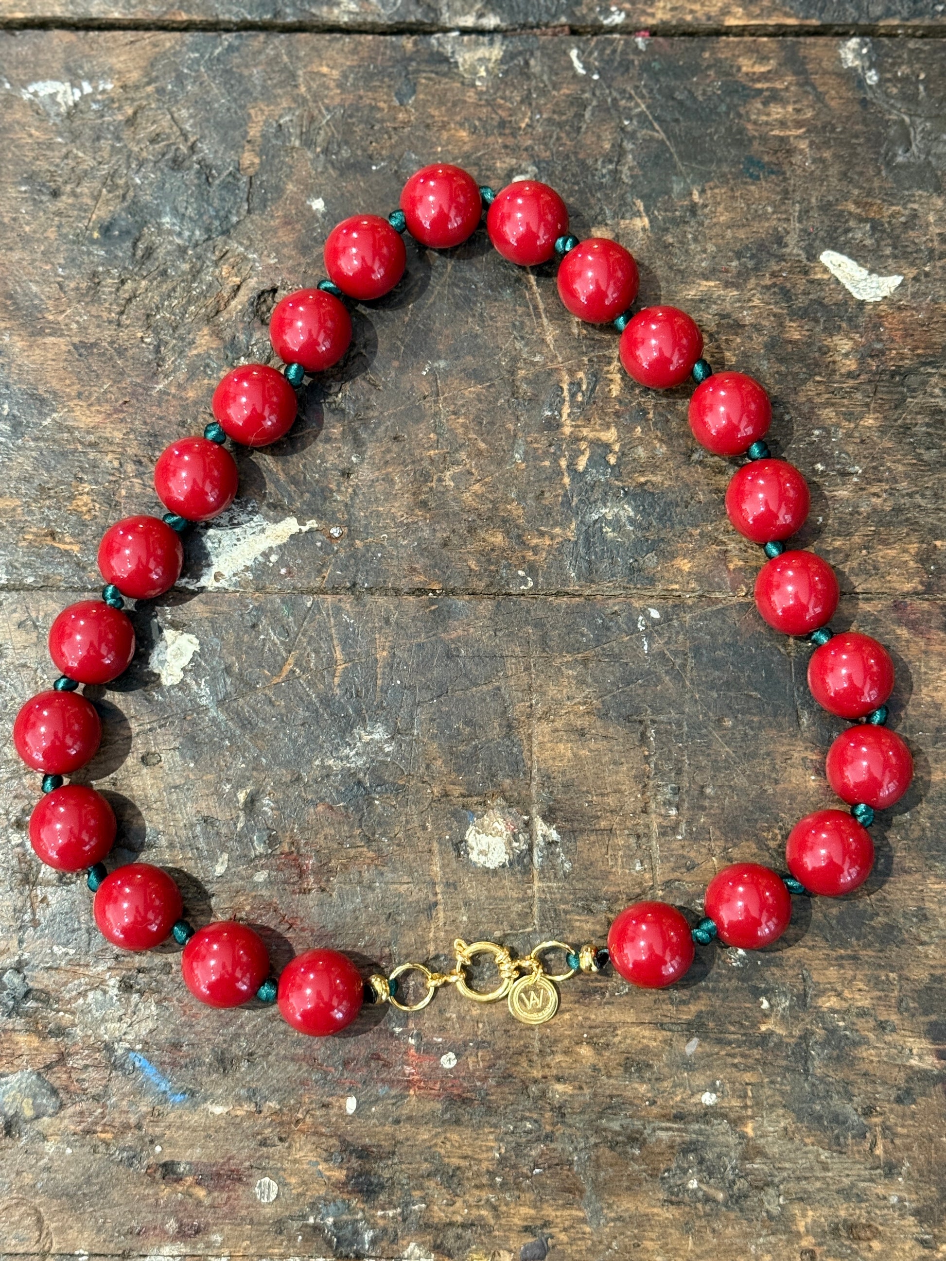 Met de grote acryl kralen en het satijnen koord creëer je helemaal de look van nu. Top op een Tshirt, sweater maar ook geweldig bij die ene jurk.