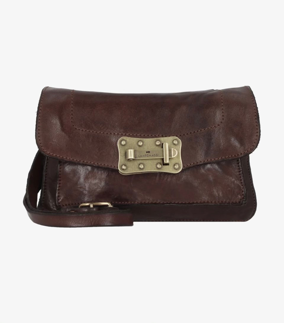 Natuurlijk rundleren tas. Binnenvakje met sluiting. Verstelbaar en afneembare schouderband. Lussen aan de achterzijde om hem aan je riem te dragen.