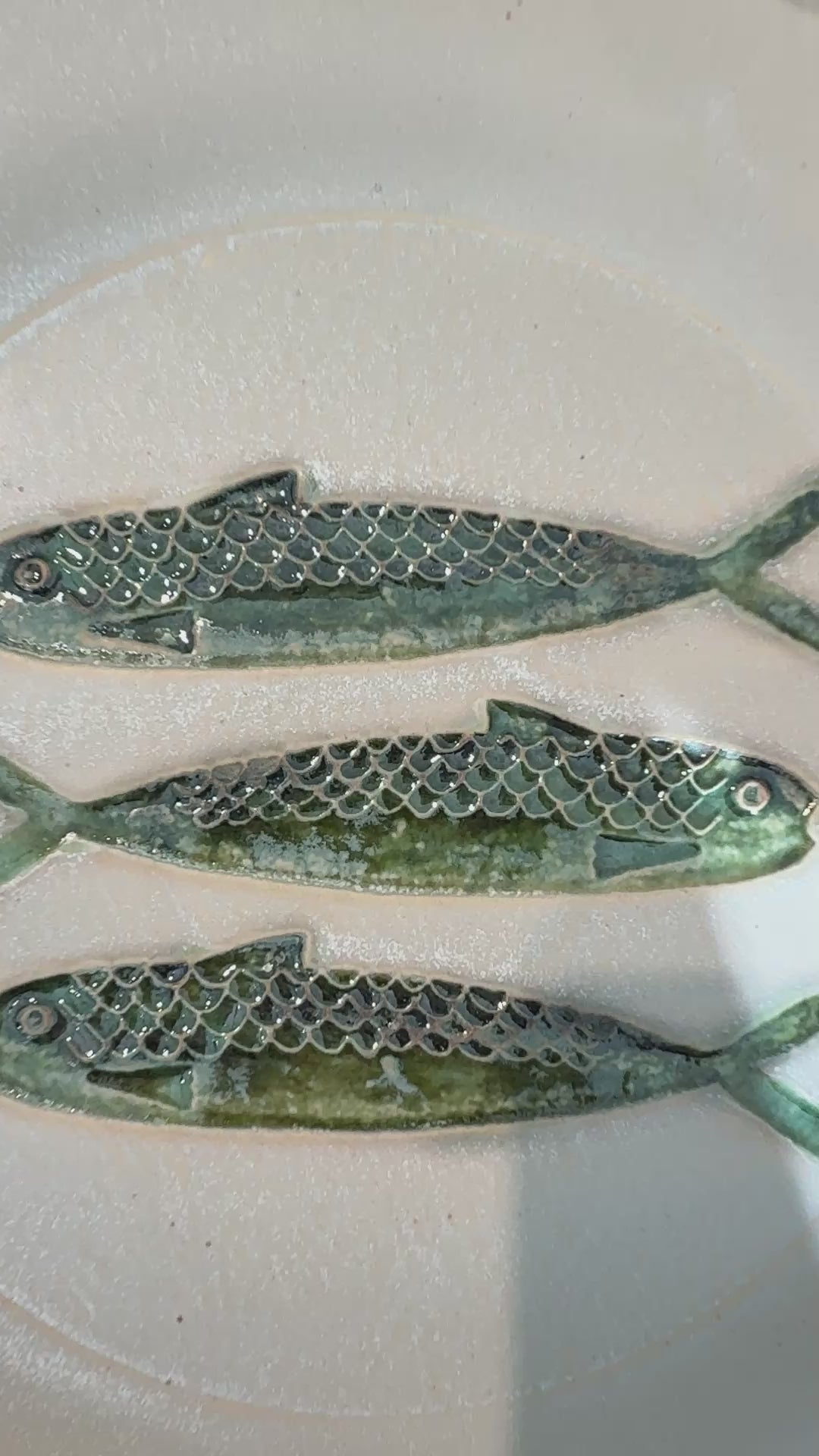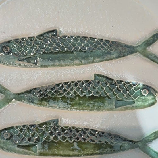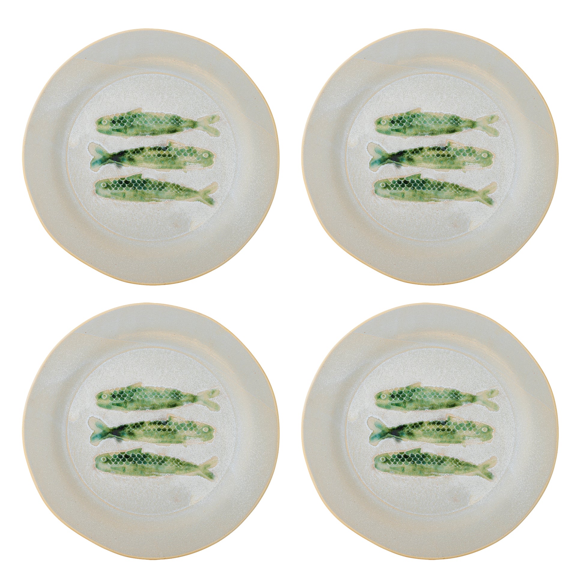 The Hadden Plate by Creative Collection is made of stoneware and decorated with an embossed motif of three green fish at the centre. The warm golden-brown rim combined with the playful design creates a charming and lively expression. The variations in the glaze makes each piece unique.