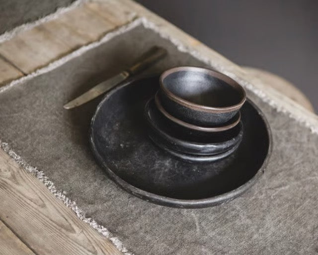 Deze tafelset collectie, geïnspireerd door de kust van Californië, is er een voor elke dag of voor speciale gelegenheden, het is een veelzijdige collectie. De uitvoering in rijke linnen kleuren krijgt meer patina door het wassen en ouder worden. Afgewerkt met franje.