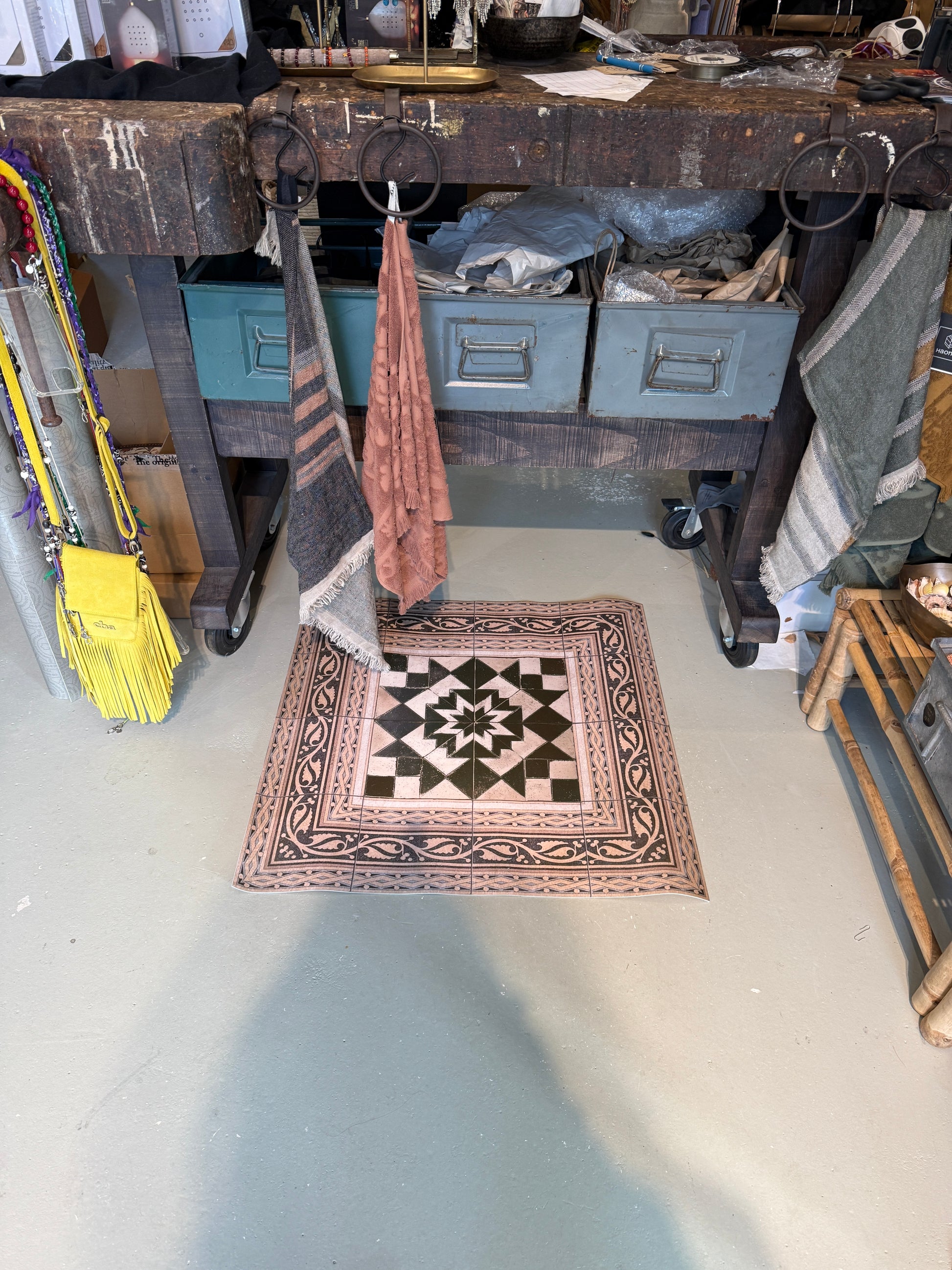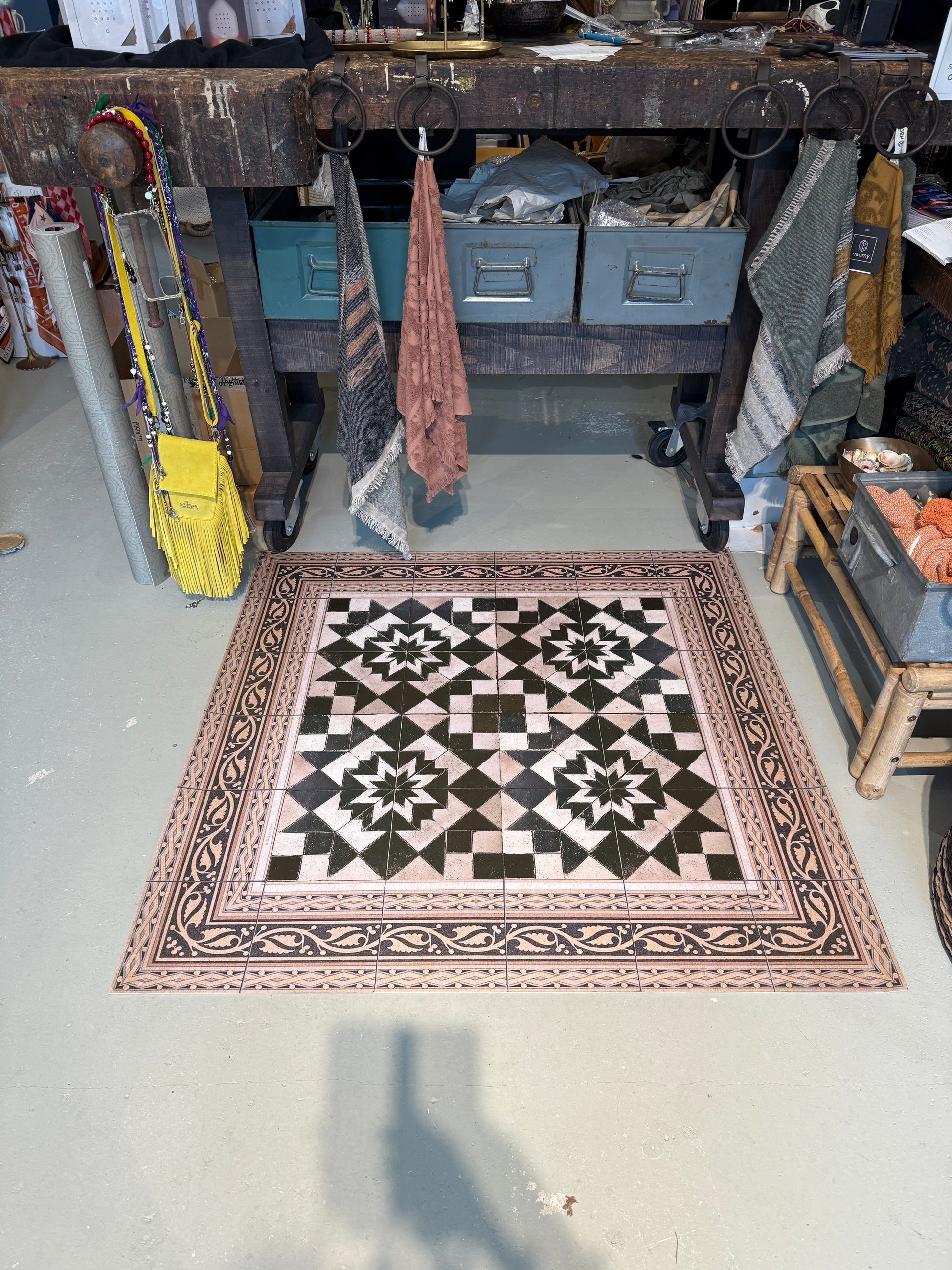 Dit kleed van vinyl brengt de sfeer van het het oude Italie in je woonkamer, keuken of overloop. Ook prachtig in de badkamer, hal of buiten.