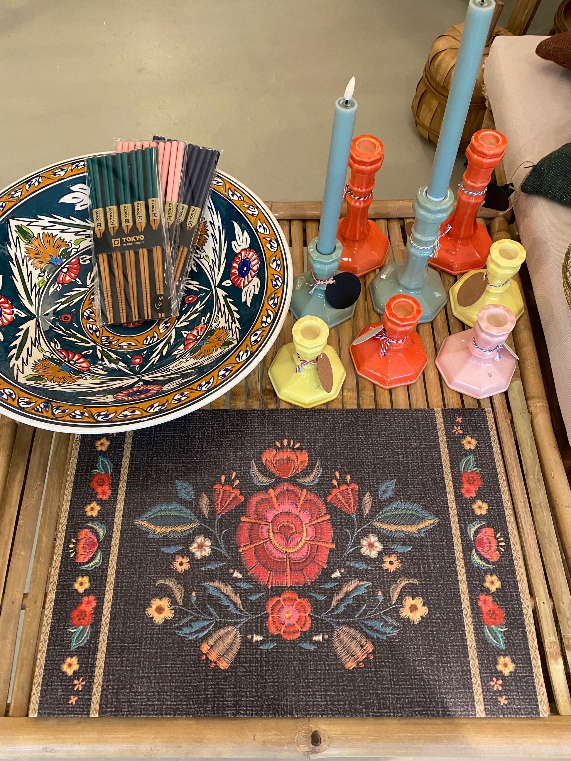 Deze kandelaar van aardewerk is in Nederland gemaakt in de Royal Goedewagen fabriek, waar van oudsher het Delfts blauw ook gemaakt werd.