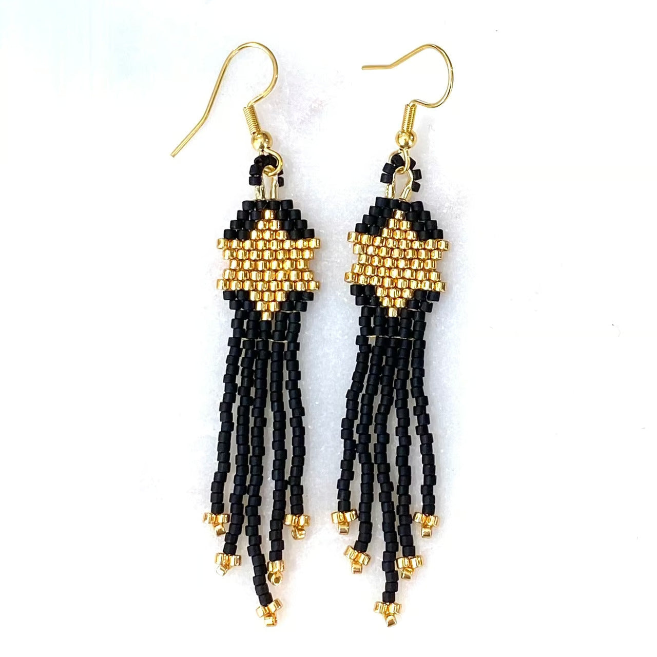 These earrings, handmade by Wanted by DaS, are embroidered bead by bead. The Miyuki beads are of the best quality.