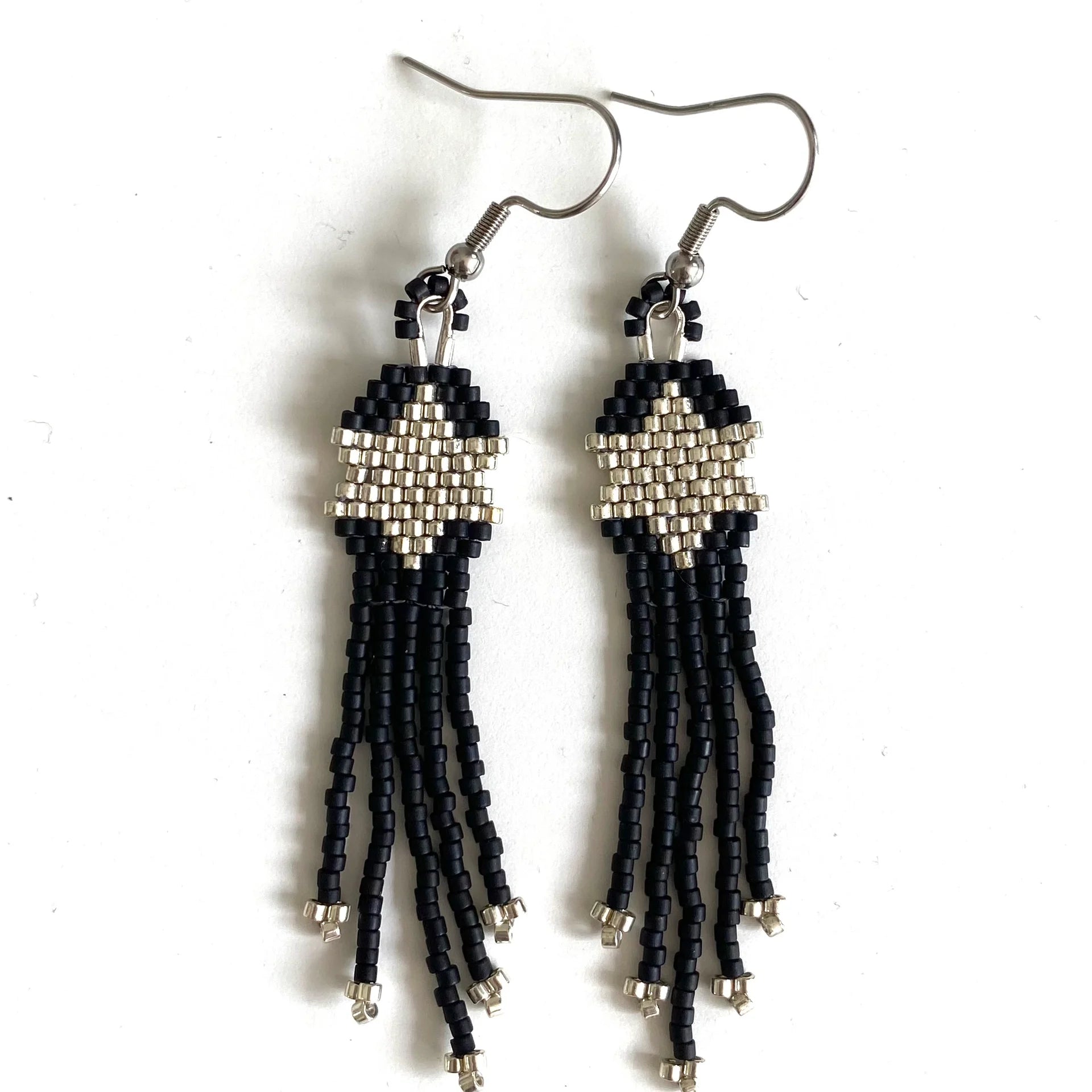 These earrings, handmade by Wanted by DaS, are embroidered bead by bead. The Miyuki beads are of the best quality.